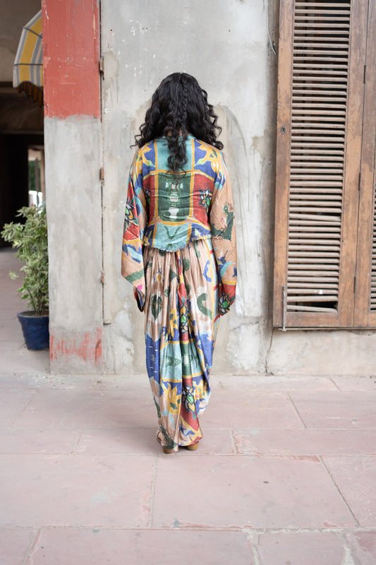 Splatter Print Big Collar Shirt & Mini Wrap Skirt