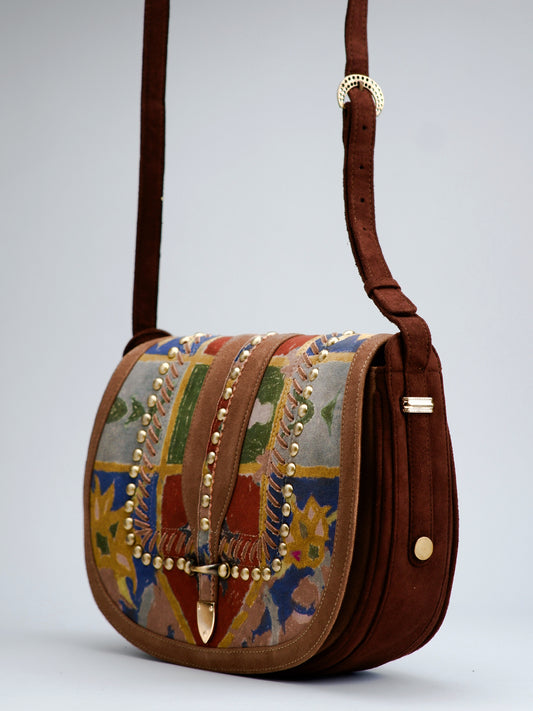 Mosaic Print Studded Saddle Bag