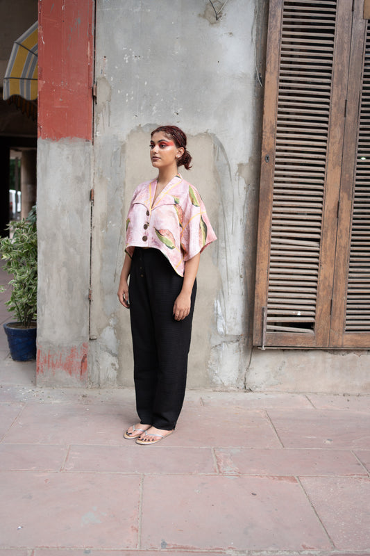 Pink Friendly Note Plant Big Collar Shirt