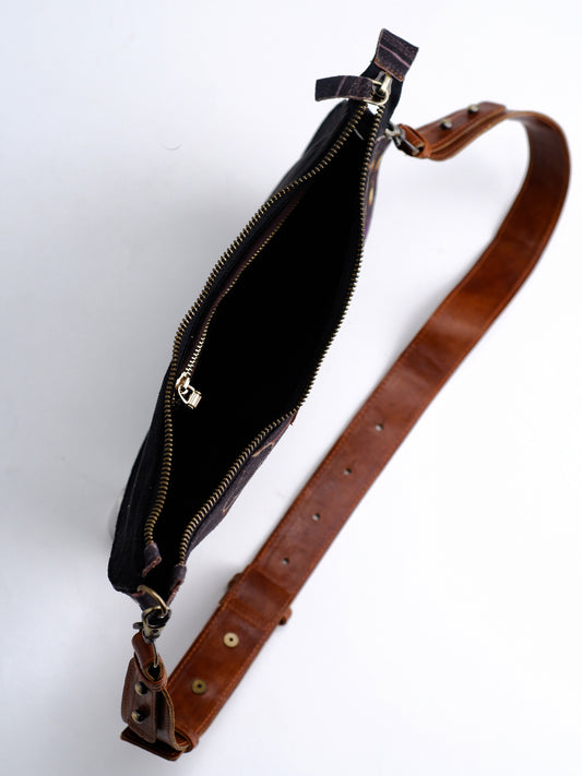 Yellow Splatter Field Print D-shaped sling & fanny bag